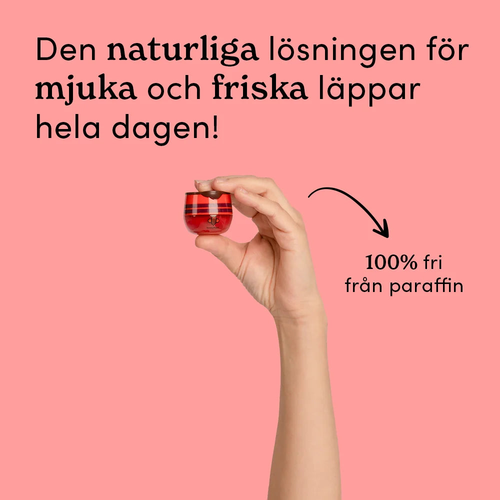 Ett vårdande läppbalsam och läppbehandling med bivax, vitamin E och propolis för att nära och skydda läpparna. Den djärva körsbärssmaken är glansig, saftig och omöjlig att ignorera. Med en livlig röd ton fungerar den både som läppvård och ett lätt färgstänk som alltid gör intryck.